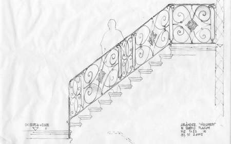 Die Treppengeländer der historischen, direkt am Rhein gelegenen Gaststätte, sind präzise Nachbildungen anhand eines Originalelementes. Das vorhandene, ca. 2 Meter lange Element wurde im oberen Bereich des Treppenaufganges im Gebäudeinneren montiert und lässt sich von den neuen, liebevoll rekonstruierte Geländern nicht unterscheiden.