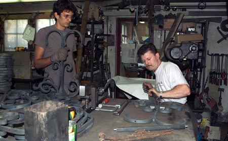 schmied, kunstschmied, kunstschmiede, metallgestaltung, metall, gestaltung, eisen, holz, handwerk, von hand, moritz, moritz haeberling, häberling, uerzlikon, zürich, rekonstruktionen, restaurationen, metall, Schmieden, Schmiedetechnik, schmiedetechnisch, Schmiedehammer, Herzhammer, Warmverformen, Gesenkschmieden, Treibarbeiten, Treibhammer, Nieten, genietet, lochen, gelocht, spalten, gespalten, naturblank, Rost, rostig, Esse, Amboss, Feuer, Feuerzange, Lufthammer, Exzenterpresse, Drehbank, Renaissance, Barock, Barockblätter, Barockgeländer, Barockportal, Barocktor, Jugendstil, Jugendstilgeländer, Eisen, Eisenmöbel, Stahlmöbel, Aluminium, Alumöbel, Buntmetall, Gusseisen, Sphäroguss, Kupfer, Messing, Prägestruktur, Schweissen, Hartlöten, Gussmodell, glühen, Lochmeissel, Bronze, Bronzefigur, Blei, verstemmen, patinieren, vernickeln, Espagnoletten, Beschläge, Rekonstruktionen, Säulen, kannelierte Säulen, Kapitell, korinthisch, Veranda, Blattgold, Dachzinnen, Treppengeländer, Handlauf, Vordach, Pavillon, Leuchten, Schild, Seerosenpark, Kronleuchter, Opernhaus Zürich, Credit Suisse Paradeplatz, Cafe Restaurant Orsini, Stauffacherbrücke, Fraumünster, Gull Leuchten, Freibad Letzigraben