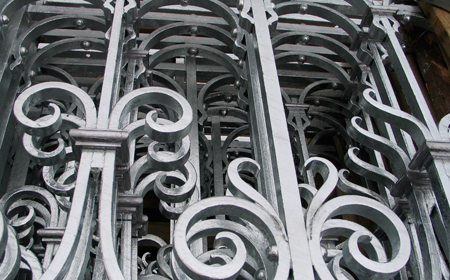 Die gewissenhafte Restauration umfasste auch das komplette Zerlegen aller Elemente in ihre Einzelkomponenten. Stark korrodierte Profile in nicht mehr erhältlichen Dimensionen wurden massgenau angefertigt und eingepasst. Der Auftrag beinhaltete auch die exakte Rekonstruktion eines komplett fehlenden Geländerelementes.