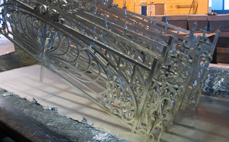 Sämtliche Geländer wurden in Einzelkomponenten zerlegt und jedes Detail erfasst (über 100 unterschiedliche Blüten, Blätter, Knospen usw. pro Element), bezeichnet, restauriert oder nötigenfalls rekonstruiert. Dazu waren unzählige Werkzeuge und Formen notwendig, die eigens dafür gebaut wurden.