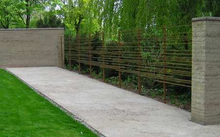 fast schwebend erscheinen die Profile zwischen den Mauern aus Stampflehm